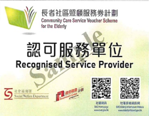 To make it easier for the members of public and voucher users to identify RSPs under the CCSV Scheme, the SWD has provided each RSP with below logo sticker which would be displayed at a conspicuous position (e.g. entrance or reception counter, etc.) of the service unit.