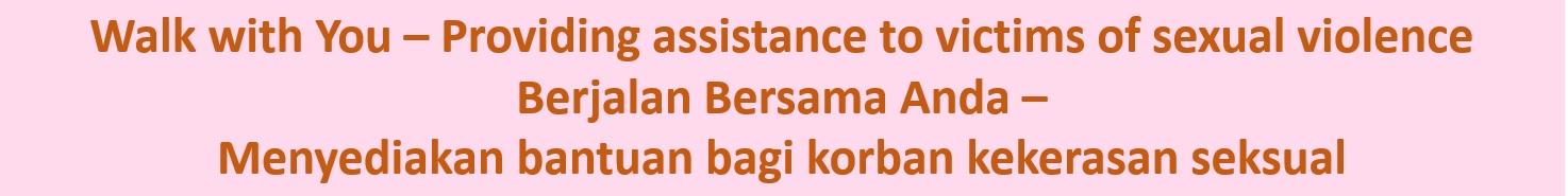 | Services for Victims of Sexual Violence | Walk with You — Providing assistance to victims of sexual violence Berjalan Bersama Anda — Menyediakan bantuan bagi korban kekerasan seksual | |