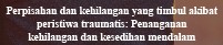 | Separation and loss arising from traumatic events: Handing of loss and grief | Perpisahan dan kehilangan yang timbul akibat peristiwa traumatis: Penanganan kehilangan dan kesedihan mendalam | |