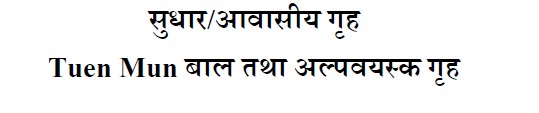 | Correctional / Residential Home Tuen Mun Children and Juvenile Home | सुधार/आवासीय गह Tuen Mun बाल तथा अल्पवयस्क गृह | |
