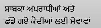 | Service for Ex-offenders and Discharged Prisoners | ਸਾਬਕਾ ਅਪਰਾਧੀਆਂ ਅਤੇ ਛੱਡੇ ਗਏ ਕੈਦੀਆਂ ਲਈ ਸੇਵਾਵਾਂ | |