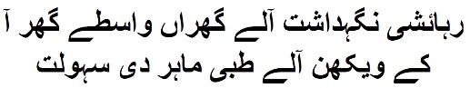 | Visiting Medical Practitioner Service For Residential Care Homes | رہائشی نگہداشت آلے گهراں واسطے گهر آ کے ويکهن آلے طبی ماہر دی سہولت |