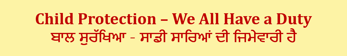 | Child Protection - We All Have a Duty | ਬਾਲ ਸੁਰੱਖਿਆ - ਸਾਡੀ ਸਾਰਿਆਂ ਦੀ ਜਿਮੇਵਾਰੀ ਹੈ | |