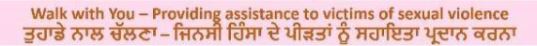 | Services for Victims of Sexual Violence | Walk with You - Providing assistance to victims of sexual violence ਤੁਹਾਡੇ ਨਾਲ ਚੱਲਣਾ - ਜਿਨਸੀ ਹਿੰਸਾ ਦੇ ਪੀੜਤਾਂ ਨੂੰ ਸਹਾਇਤਾ ਪ੍ਰਦਾਨ ਕਰਨਾ | |