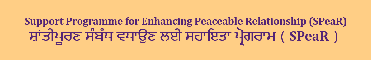| Support Programme for Enhancing Peaceable Relationship (SPeaR) | ਸ਼ਾਂਤੀਪੂਰਣ ਸੰਬੰਧ ਵਧਾਉਣ ਲਈ ਸਹਾਇਤਾ ਪ੍ਰੋਗਰਾਮ (SPeaR) | |