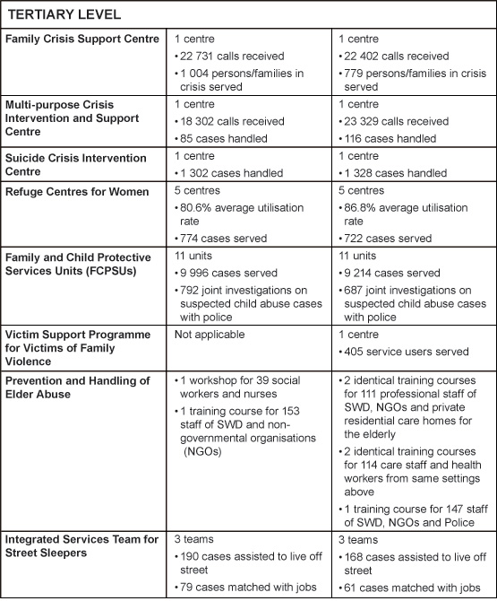 At the tertiary level, specialised services and crisis intervention against specific problems such as domestic
