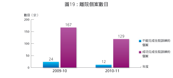 (感化院舍)和感化院的離院個案數目如下(圖19): |