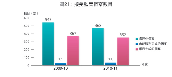 社署與懲教署合作,為青少年違法者提供青少年罪犯評估專案小組服務,以及為成年釋囚提供監管釋囚計劃。兩項服務所處理的個案分別如下