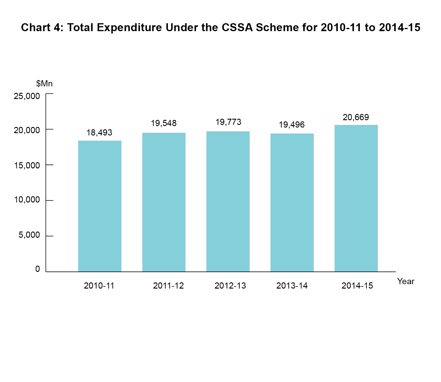 A total of $20,669 million was paid out under the CSSA Scheme in 2014-15. The total expenditure for the years 2010-11 to 2014-15 is shown in Chart 4 below: