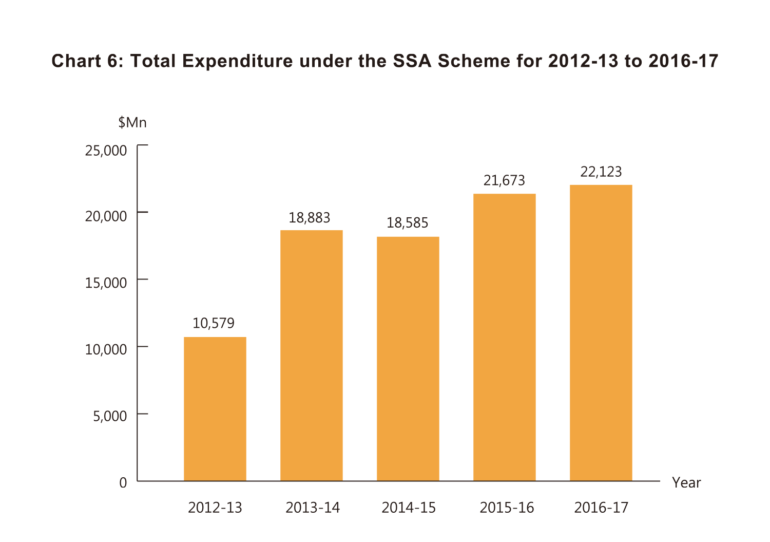 A total of $22,123 million was paid out under the SSA Scheme in 2016-17. The total expenditure for the years 2012-13 to 2016-17 is shown in Chart 6 below: