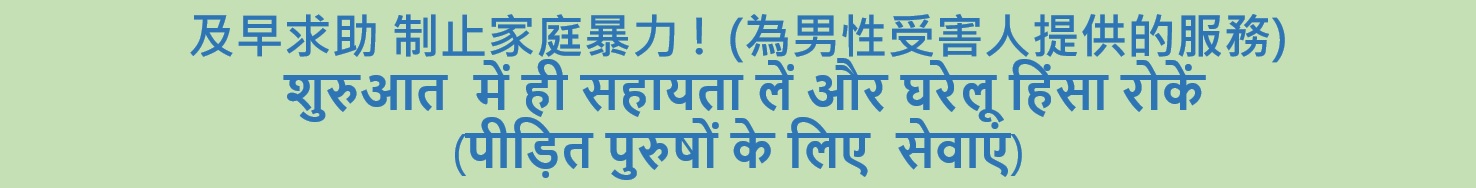 | 及早求助防止家庭暴力 – 為男性受害人提供的服務 | जल्दी सहायता लें और घरेलू हिंसा को रोकें पीड़ित पुरुषों के लिए सेवाएं | PDF版 |